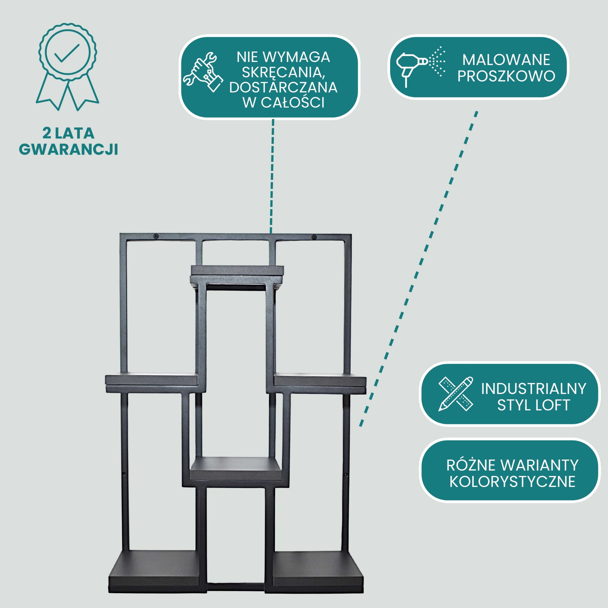 Підвісна підставка для квітів і рослин - метал, стиль лофт - 6 полиць - чорна