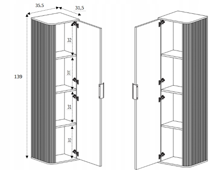 - Бічна сторона шафи - плита МДФ 16 мм, рифлена