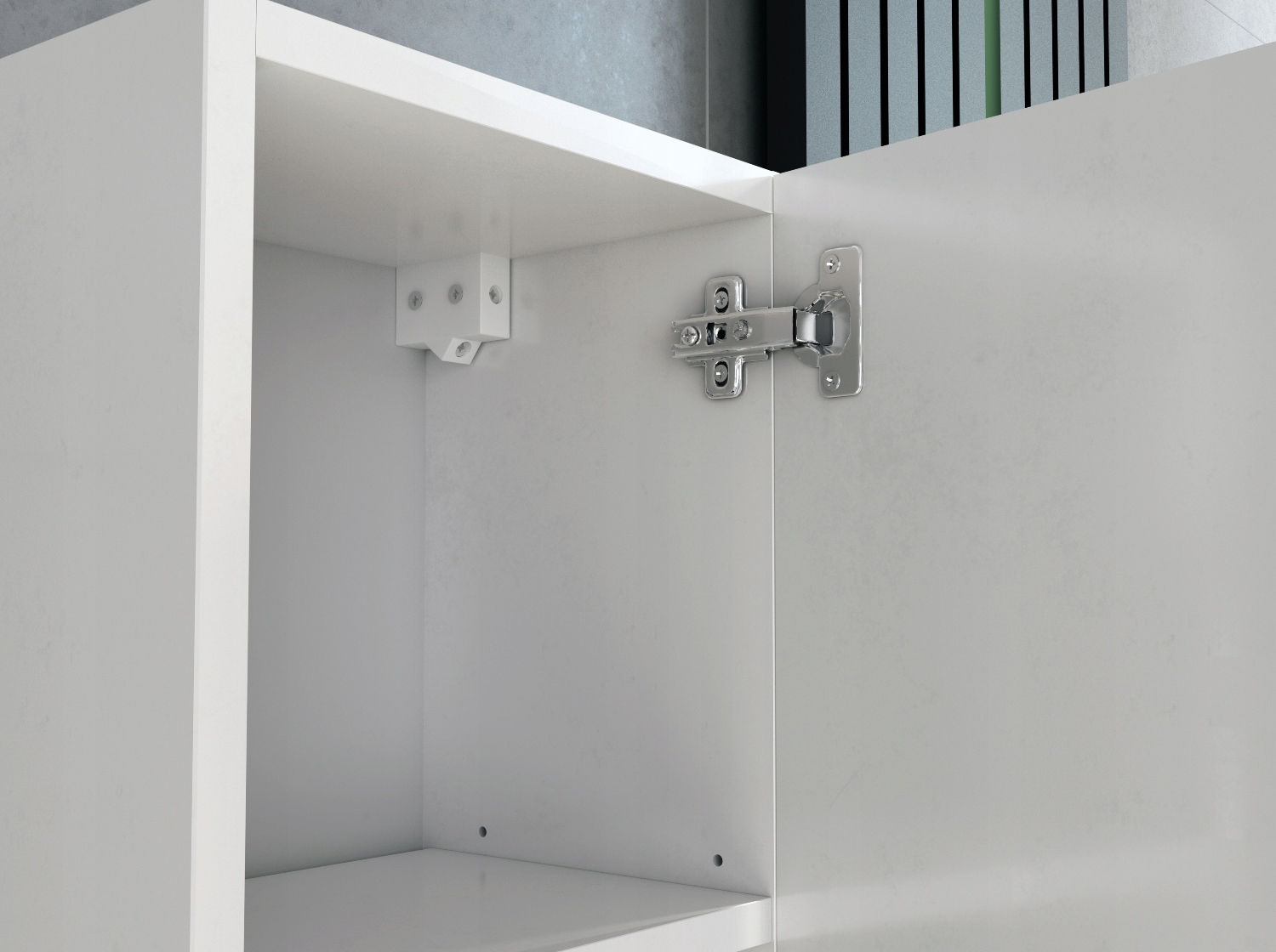 Шафа підвішена на 4 меблевих підвісках з регульованою висотою та глибиною.