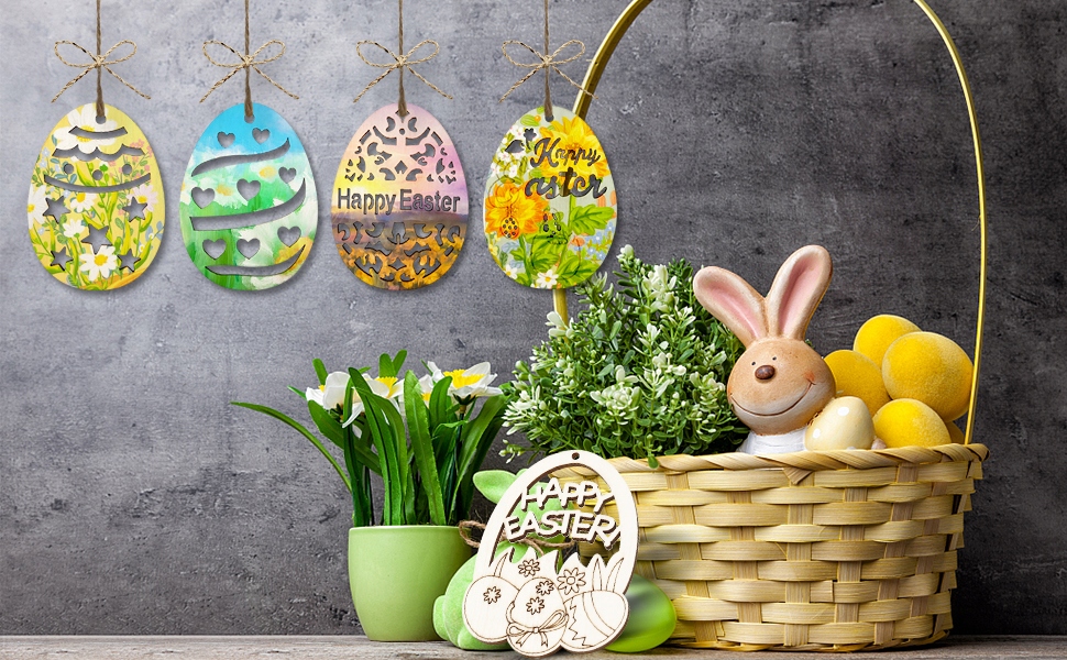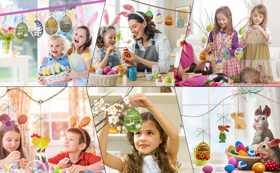 - 🐤🐤 48 Дерев’яні підвіски У 12 різних приємних форм (4 штуки кожен) та 48 штук струни. Пасхальні прикраси виготовлені з екологічної, міцної багаторазової деревини. 4 Це хороший вибір для класів Великодня та батьківської дитини.