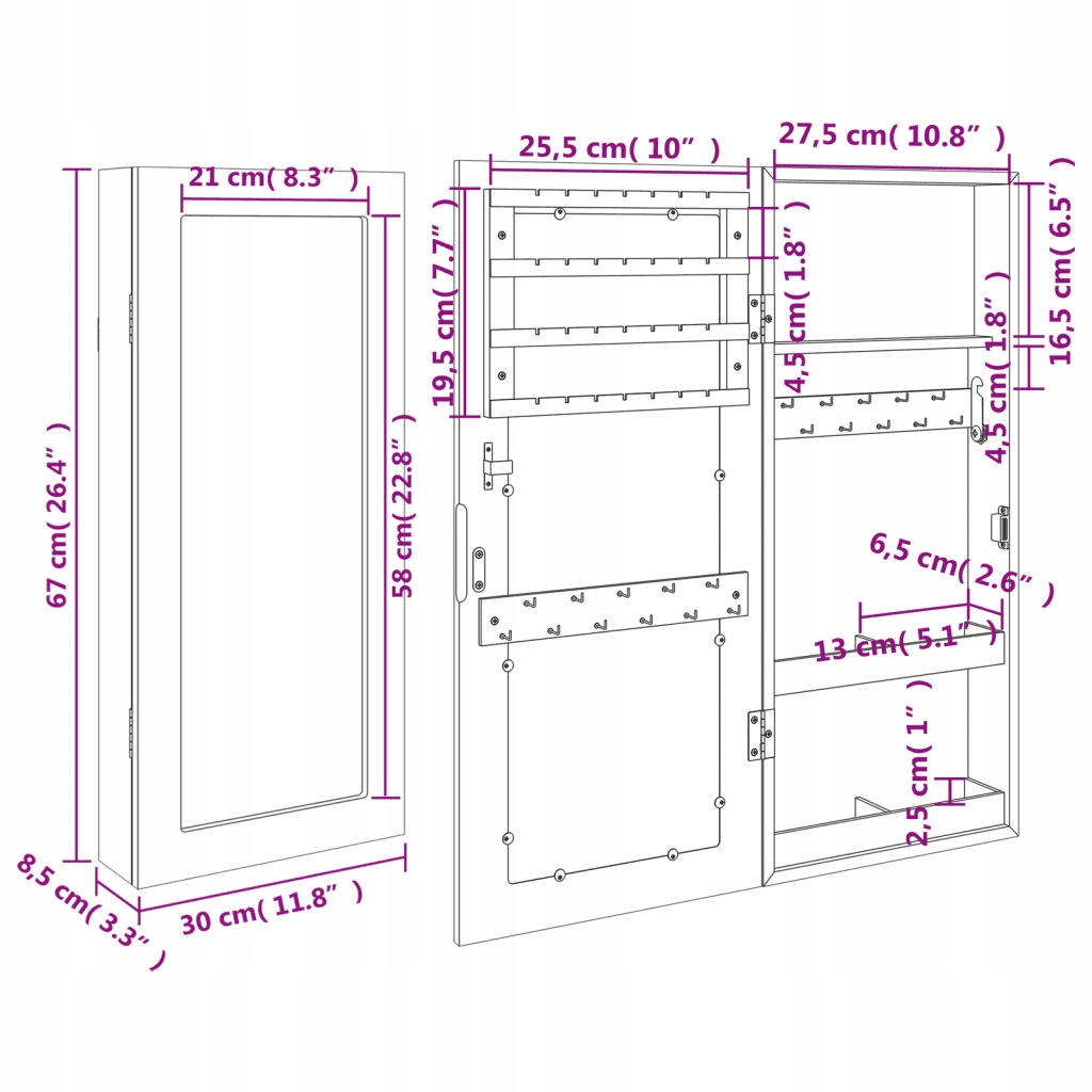4 4 Виготовлений з матеріалу, схожий на деревину, ювелірну шафу можна легко очистити вологою тканиною. 4 Практичне дзеркало: дзеркало цього організатора ювелірних виробів стане ідеальним помічником для виготовлення макіяжу та підготовки до виходу. Ювелірні вироби мають закриті двері і доставляються з 2 клавішами, щоб забезпечити безпеку ваших речей. М'яка тканина, м’яка тканина, не тільки додає меблів витонченості, але й захищає ваші улюблені прикраси від подряпин. Збереження місця: Повісьте цей організатор дзеркала для ювелірних виробів на дверях за допомогою прикріплених гачків або встановіть його на стіну, щоб заощадити простір на підлозі. Знайте:
