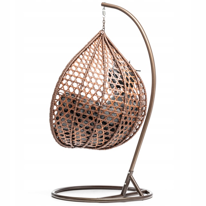Крісло легко зібрати та має міцне кріплення з амортизуючою пружиною, що підвищує комфорт під час гойдання. Виготовлений із матеріалів, стійких до ультрафіолетового випромінювання та вологи, він ідеально підходить для використання на відкритому повітрі протягом тривалого часу.