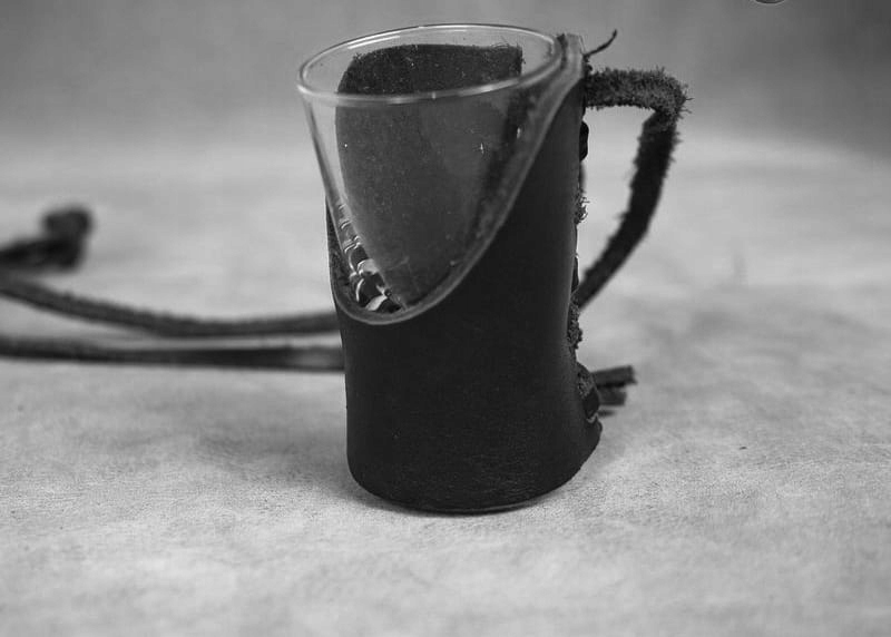 - Скло зі шкіряною кришкою може бути приємним та функціональним подарунком або практичною дрібницею.