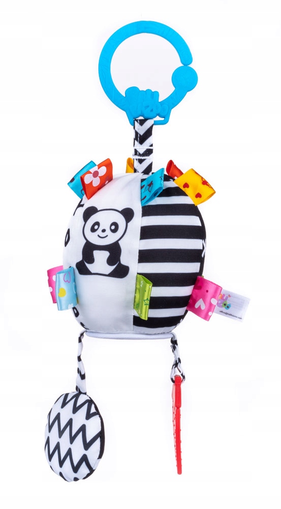 їм допомагають датчики підвісних кульок із друкованими зображеннями тварин та з одиночними літерами. М'яч також має контрастні смуги та барвисті теги з різноманітною текстурою, а під безпечним дзеркалом для само знання малюка! Все це для стимулювання розвитку наймолодших ще більше! Практичний затискач дозволяє прикріпити підвіски де завгодно. Іграшка, призначена для дітей від народження.
