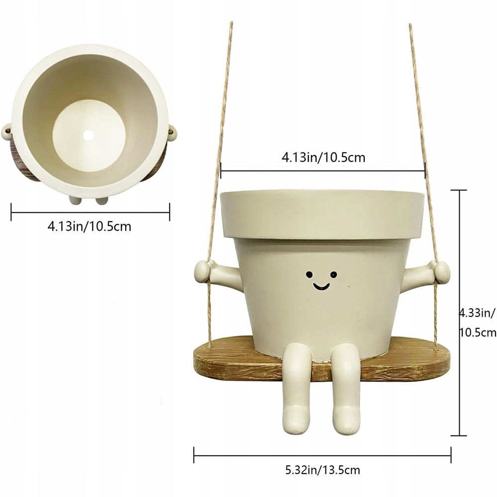 - Вигляд гойдалок у горщику дуже унікальний, як дитина, що сидить на гойдалках. Завдяки унікальному дизайну обличчя та посмішці, підвісний квітковий горщик додасть нотки веселощів і чарівності вашому саду чи кімнаті.