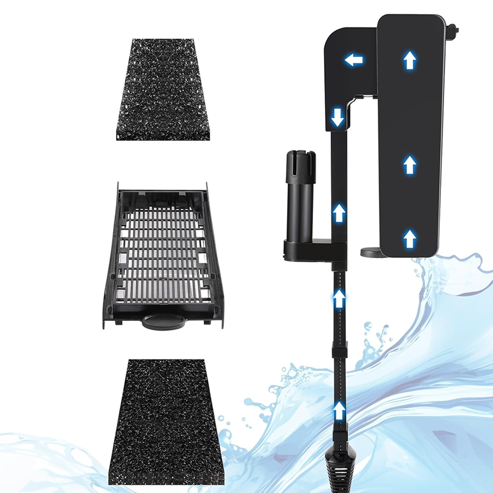 Зовнішній фільтр можна повісити на зовнішню стінку акваріума, заощаджуючи місце. Легко встановити - просто додайте воду в резервуар для фільтра та увімкніть живлення, щоб запустити водяний насос, уникаючи його сухої роботи. Примітка. Зменшення відстані між рівнем води та розеткою до 0-2 см зменшить шум потоку води.