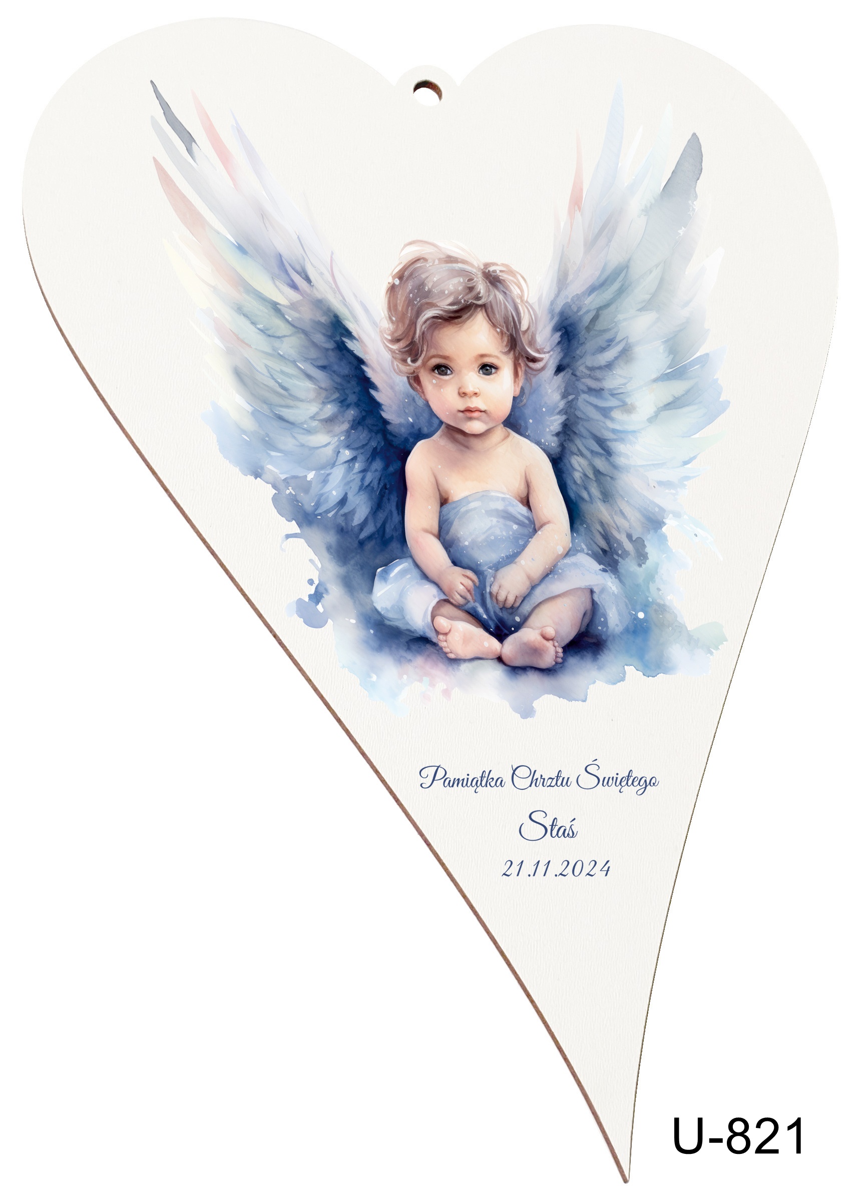 Сувенір для причастя, ангел - барвиста графіка на білому серці