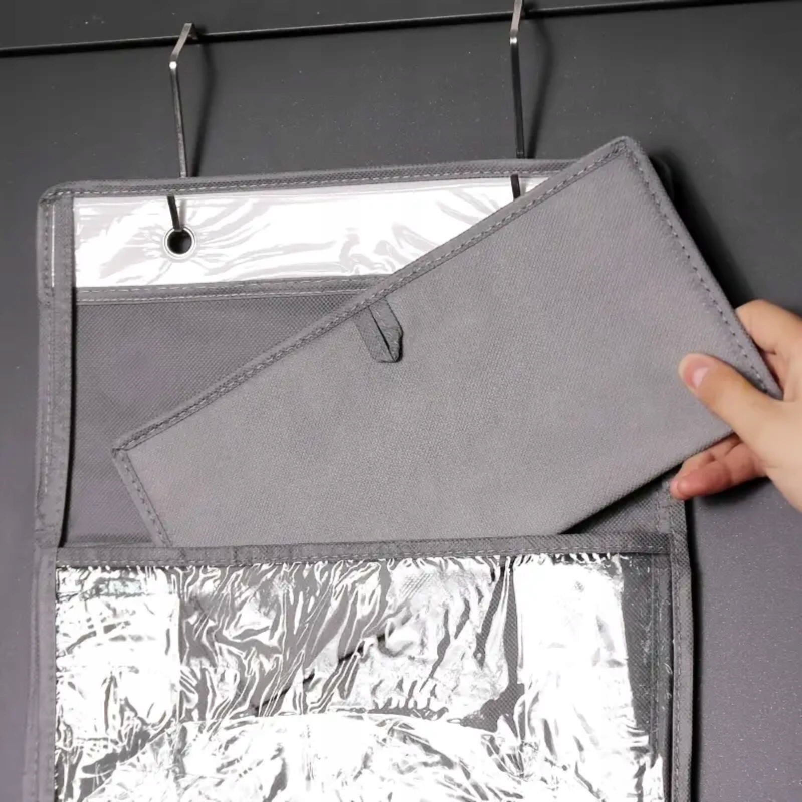 Органайзер постачається з міцними залізними гачками, які дозволяють швидко та стабільно повісити його на двері. Ви заощаджуєте час і зусилля, а також одразу створюєте порядок у своєму оточенні.