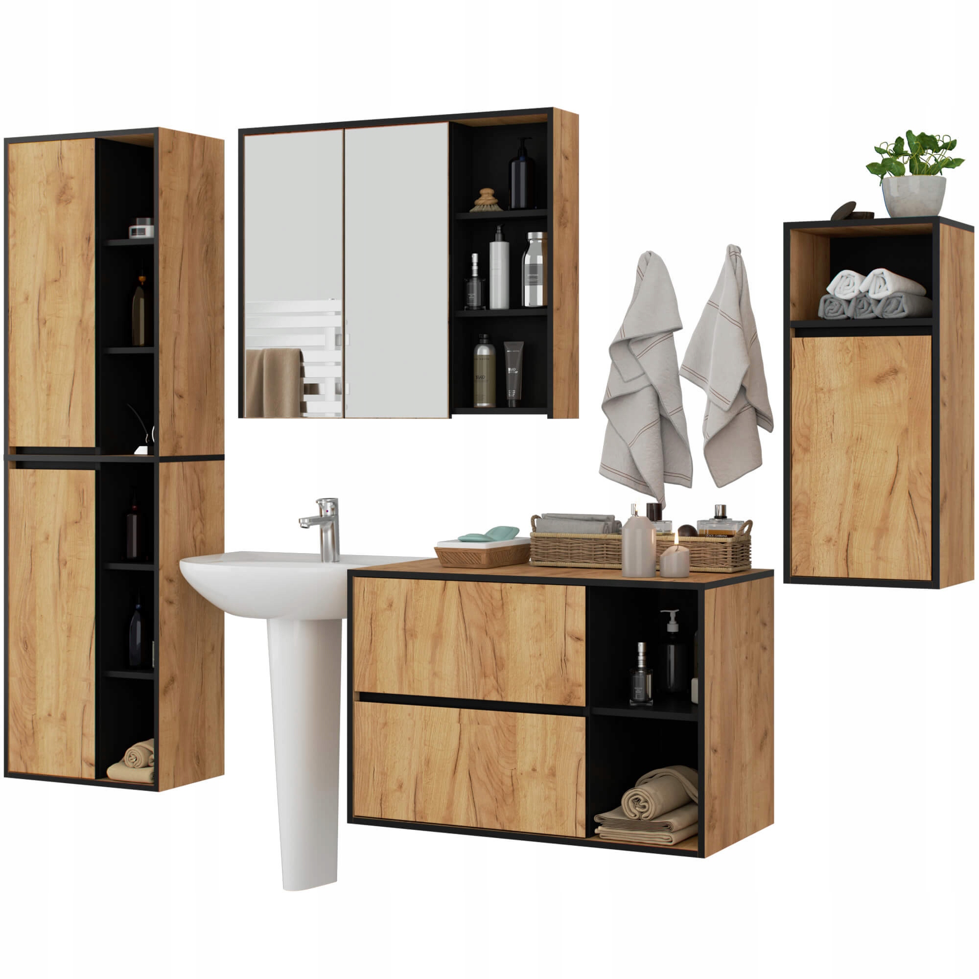 НАБІР ПІДВІСНИХ МЕБЛІВ ДЛЯ ВАННОЇ КІМНАТИ VAMI, ДУБ КРАФТ / ЧОРНИЙ, Furnitur CHORD