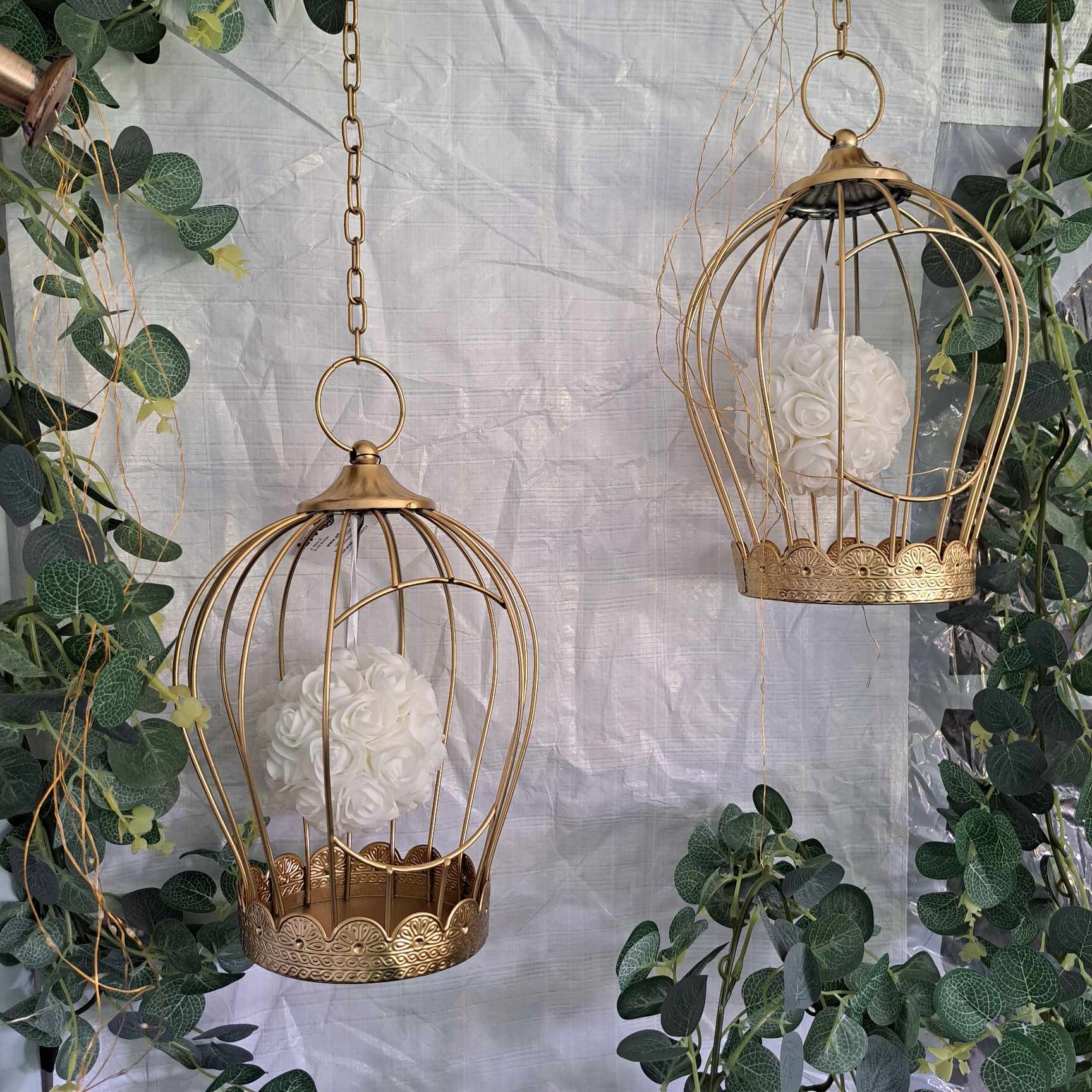 Підвісний ліхтар, золота клітка, прикраса саду, на металевому ланцюжку