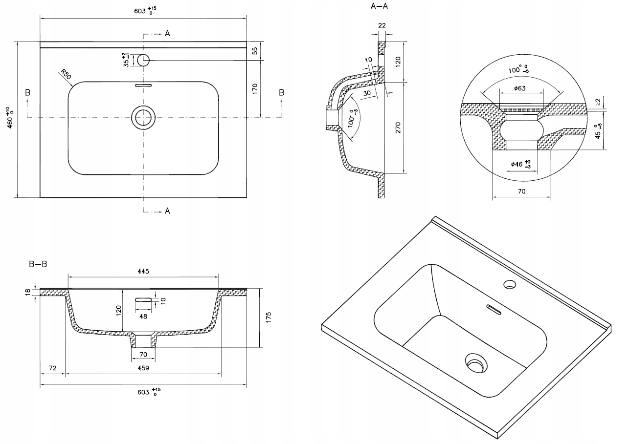 - глибина - 46 см