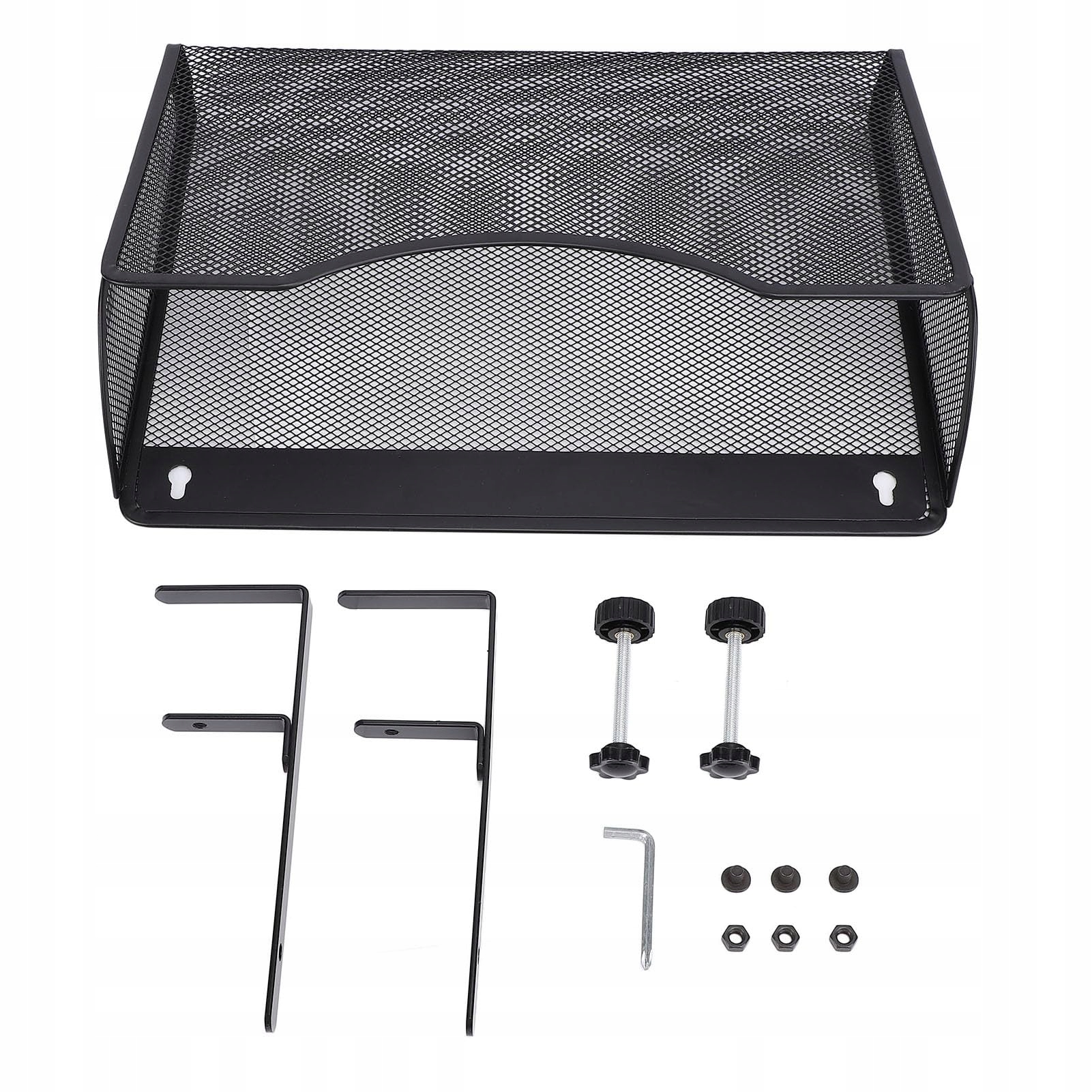 Свердління чи інструменти не потрібні, що спрощує встановлення. У комплект входять силіконові накладки, які запобігають появі подряпин на столах та інших предметах. Закруглені кути забезпечують захист від ударів. Просто прикріпіть F-затискач до кошика за допомогою гвинтів і прикріпіть відсік під столом до стільниці. Наш настільний органайзер можна встановити та встановити під столом або зовні.