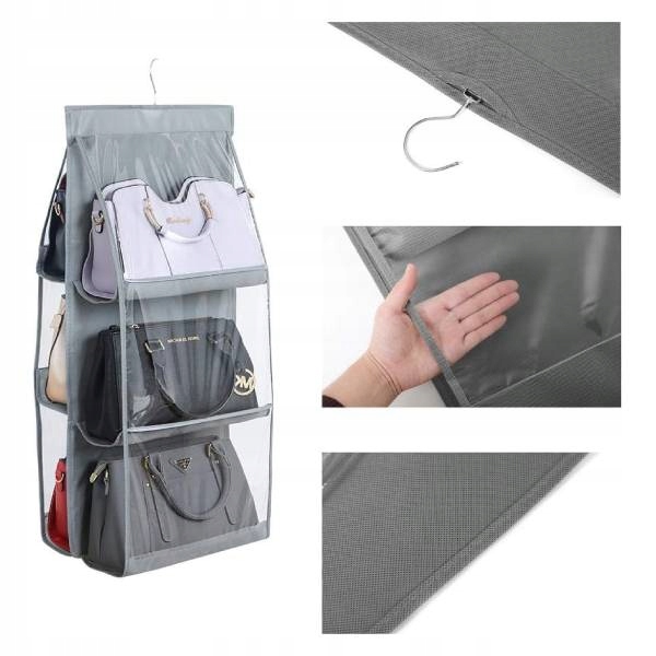 Цей практичний підвісний шафа-органайзер із шістьма кишенями є ідеальним рішенням для тих, хто хоче тримати свої сумки впорядкованими та легкодоступними.
