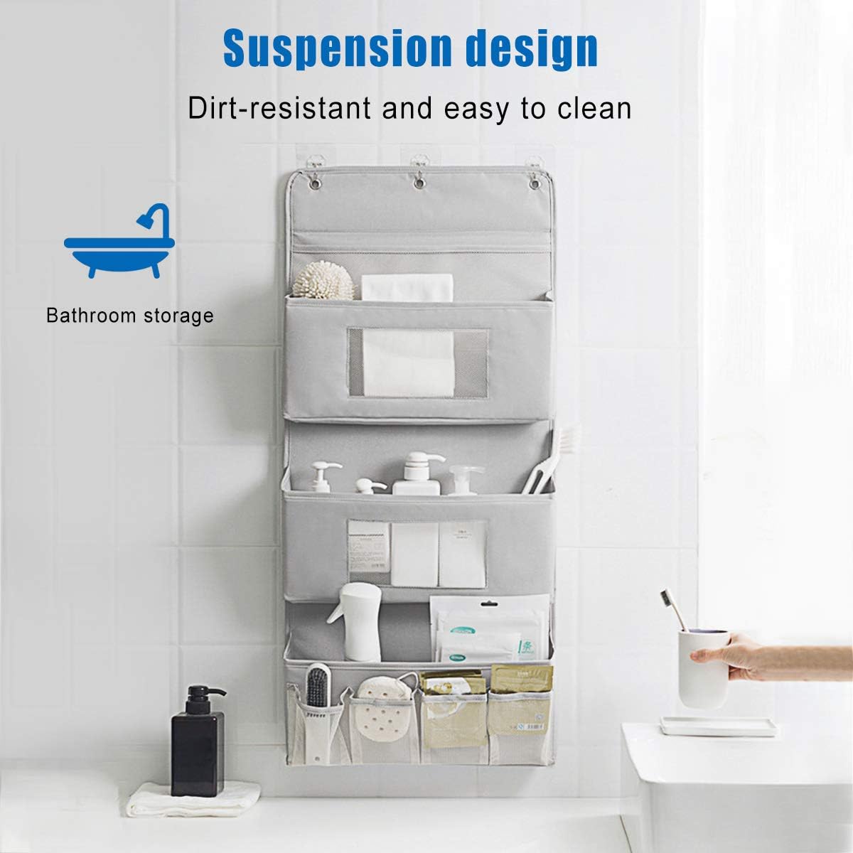 Стійкий матеріал. Наші підвісні органайзери для шаф виготовлені з тканини Оксфорд, яку можна прати, пропускати повітря та захищати від бруду, і вони дозволяють використовувати більш міцну сумку для зберігання. Він жорсткий і добре тримає форму, коли висить на стіні.