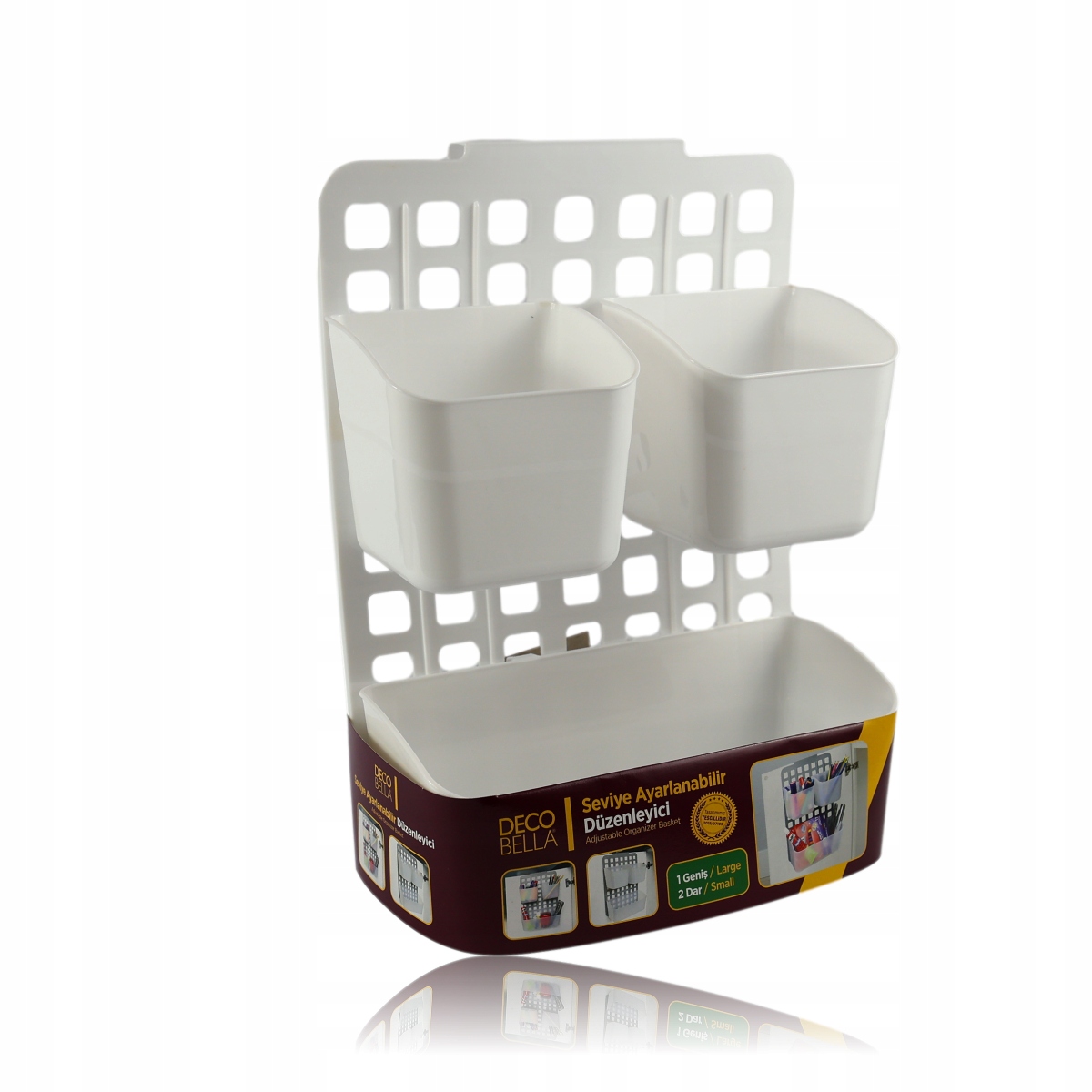 Він оснащений перфорацією в основі, завдяки чому зберігає свою гнучкість і міцність. Ви можете повісити його в будь-яку шафу, що відкривається збоку, щоб збільшити його місткість. Органайзер регулюється - кошики можна повісити на будь-яку висоту. Завдяки цьому він підходить для більшості меблів і дозволяє зберігати предмети різного розміру.