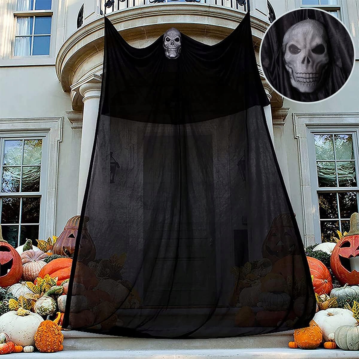 - 4-метрова чорна сітка, моторошна тканина, що висить із моторошними привидами, завдяки чому ваш будинок із привидами стане прикрасою на Хелловін. Це гарний вибір, щоб прикрасити та налякати своїх друзів, сусідів та гостей на Хеллоуїн