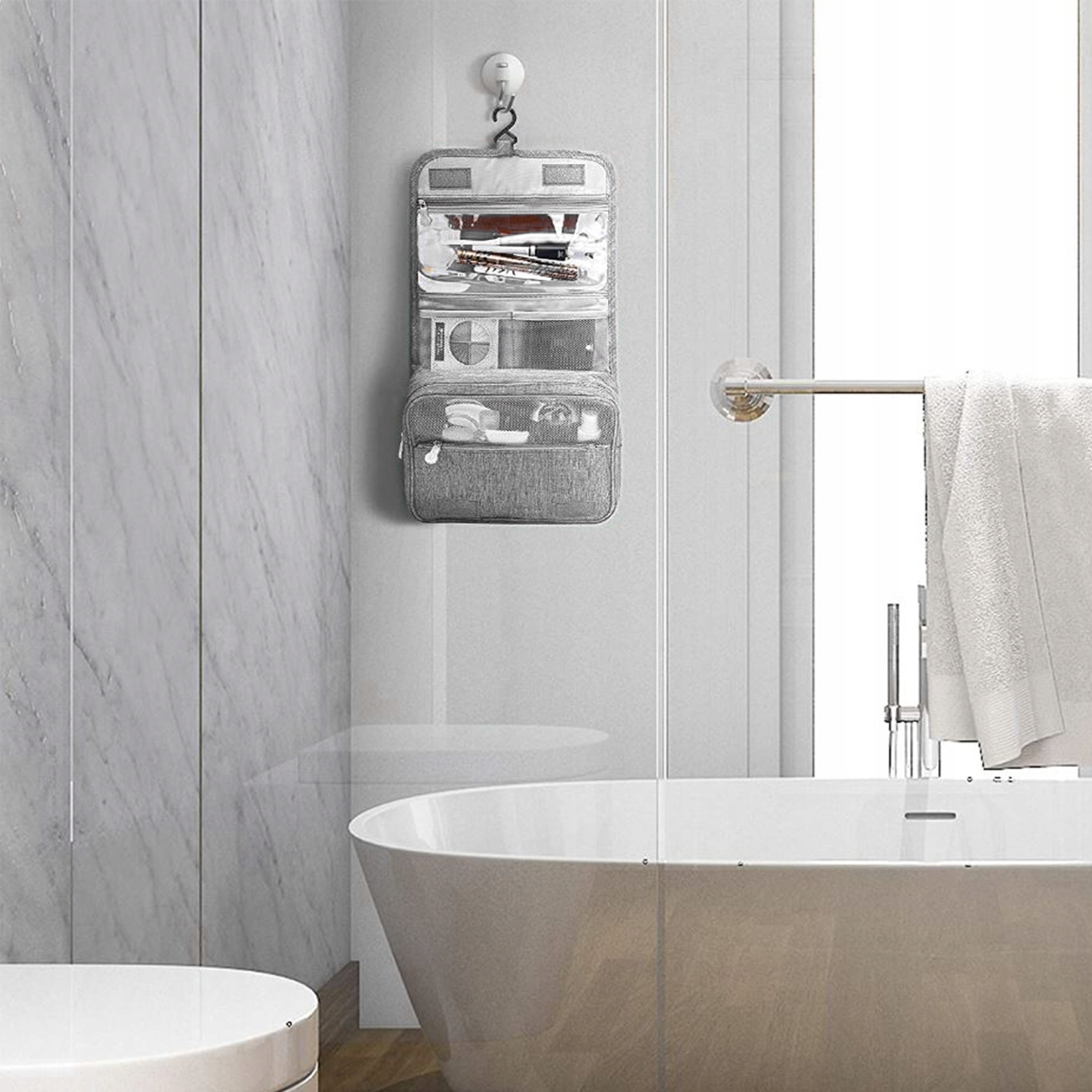 Надзвичайно зручна і водночас містка косметичка чорного кольору, яка можна повісити як зручний органайзер. Ідеальне рішення як для жінок, так і для чоловіків, які хочуть комфортно доглядати за собою під час подорожі. Чудово зберігає косметику в порядку, а в розкладеному вигляді кожна косметика «під рукою».