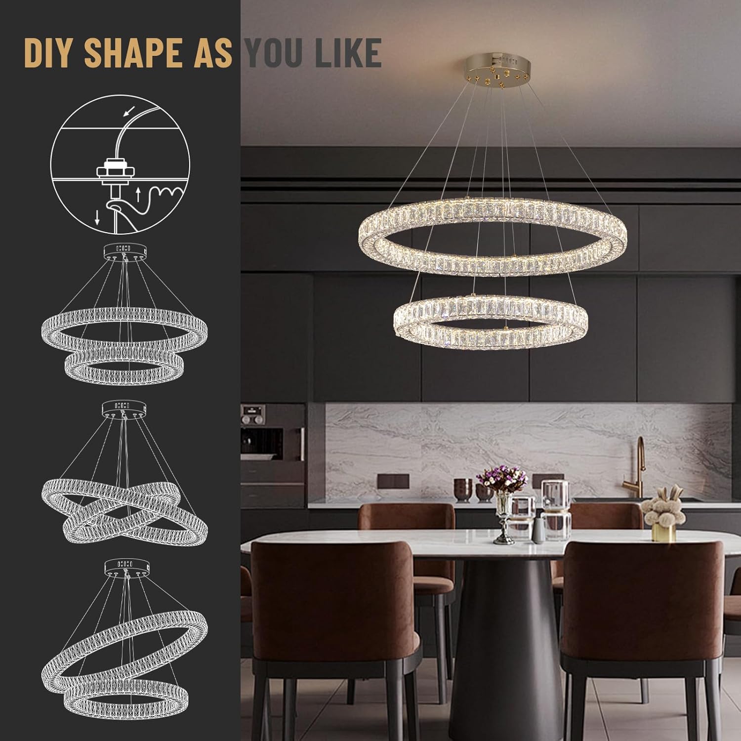 ПІДВІСНИЙ СТЕЛЕВИЙ СВІТИЛЬНИК ЗОЛОТИЙ СВІТЛОДІОДНИЙ ХРОМОВИЙ КІЛЬЦЕВИЙ ЛЮСТРА З ДИСТАНЦІЙНИМ КЕРУВАННЯМ