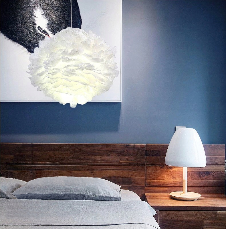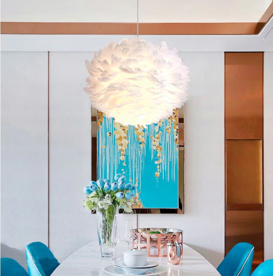 ПІДВІСНИЙ СВІТИЛЬНИК З ПІР'ЯНОГО ПІР'Я, НОРДИЧНА ПІДВІСНА ЛЮСТРА З БІЛОГО ПІР'Я