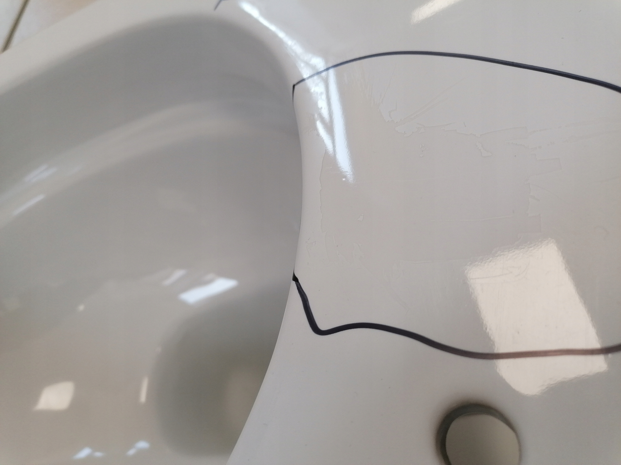 Цей предмет має дефекти покриття внаслідок випалу кераміки. Дефекти позначені та видно на фотографіях нижче.