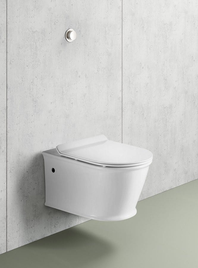 Rimless (NoRim) - унітази без традиційного зливного фланця. Гладка поверхня без зайвих западин, дірок і вигинів. Змивна вода тече через водорозподільник тільки з тильної сторони унітазу, і завдяки спеціальній формі кераміки ідеально ополіскує внутрішній простір. Перевагою є простота догляду та очищення унітазу. Звичайно, існує подвійна система змиву, яка використовує 3 або 4,5 літри води.