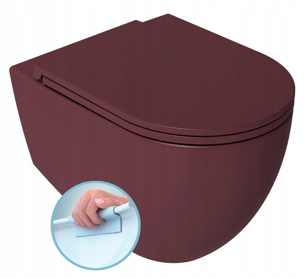 Підвісний унітаз INFINITY, без оправи, 36,5х53 см, темно-бордовий матовий