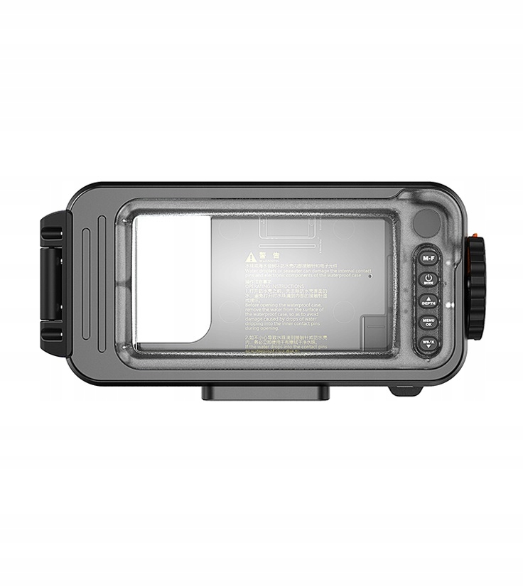 - це універсальний водонепроникний корпус смартфона, завдяки якому ми можемо фотографувати з нашим смартфоном на глибині до 80 м. Незалежно від операційної системи iOS (iPhone) або Android (Samsung, Huawei, Xiaomi, Sony, LG, Oppo, HTC тощо). Ми контролюємо корпус за допомогою безкоштовної програми. Щоб поєднати корпус із додатком, підключіться через Bluetooth. Безпосередньо з програми ми можемо поділитися нашими фотографіями та відео в соціальних мережах або надсилати їх друзям. Кнопки, що використовуються для роботи програми та великої та зручної кнопки затвора.