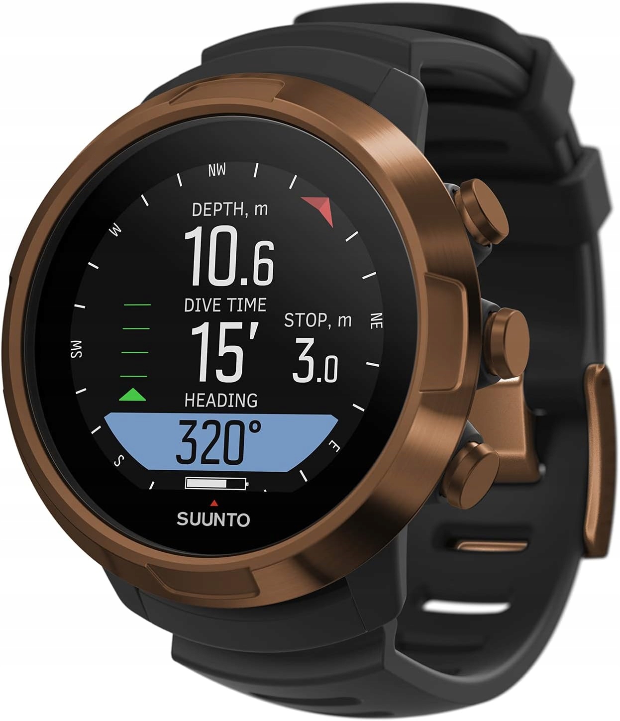 Персоналізований дайвінг-комп’ютер у форматі наручного годинника з акумуляторною батареєю для початківців і просунутих, змінні браслети завдяки інтелектуальній застібці - висококонтрастний кольоровий дисплей, безпечна навігація завдяки 3D-компасу, нижчі режими вимірювання повітря, нітроксу та годинника, бездротове з’єднання для перевірки пляшки тиск - планування та аналіз занурень та інформації завдяки детальній графічній графіці. Протоколи ПК через програмне забезпечення SUUNTO DM5, програмування газу, обмін пригодами через Bluetooth зі смартфоном - SUUNTO Fused RGBM 2: складний алгоритм для кружляння, спортивних і технічних занурень, забезпечує безпечний вхід завдяки подовженому базовому часу та зменшеному загальному часу декомпресії завдяки безперервному входу , підходить для глибин до 100 метрів - Комплект поставки: 1 x SUUNTO Dive D5 Copper, включаючи USB-кабель, розміри корпусу: 53 x 53 x 16,5 мм, матеріал: силікон/мінеральний кристал, колір: мідь, SS050569000