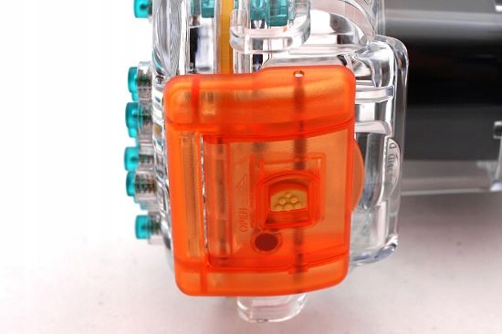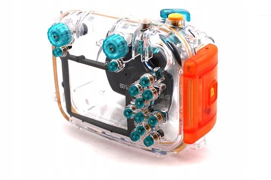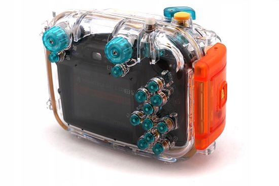 Легкий і ідеально збалансований підводний корпус із прозорого полікарбонату. Зберігає герметичність і захищає пристрій від напору води на глибині до 40 м, дає можливість візуально перевіряти герметичність і стан пристрою (основне ущільнення добре видно весь час). Корпус безпечний і простий у використанні - встановлення камери всередині займає короткий час.