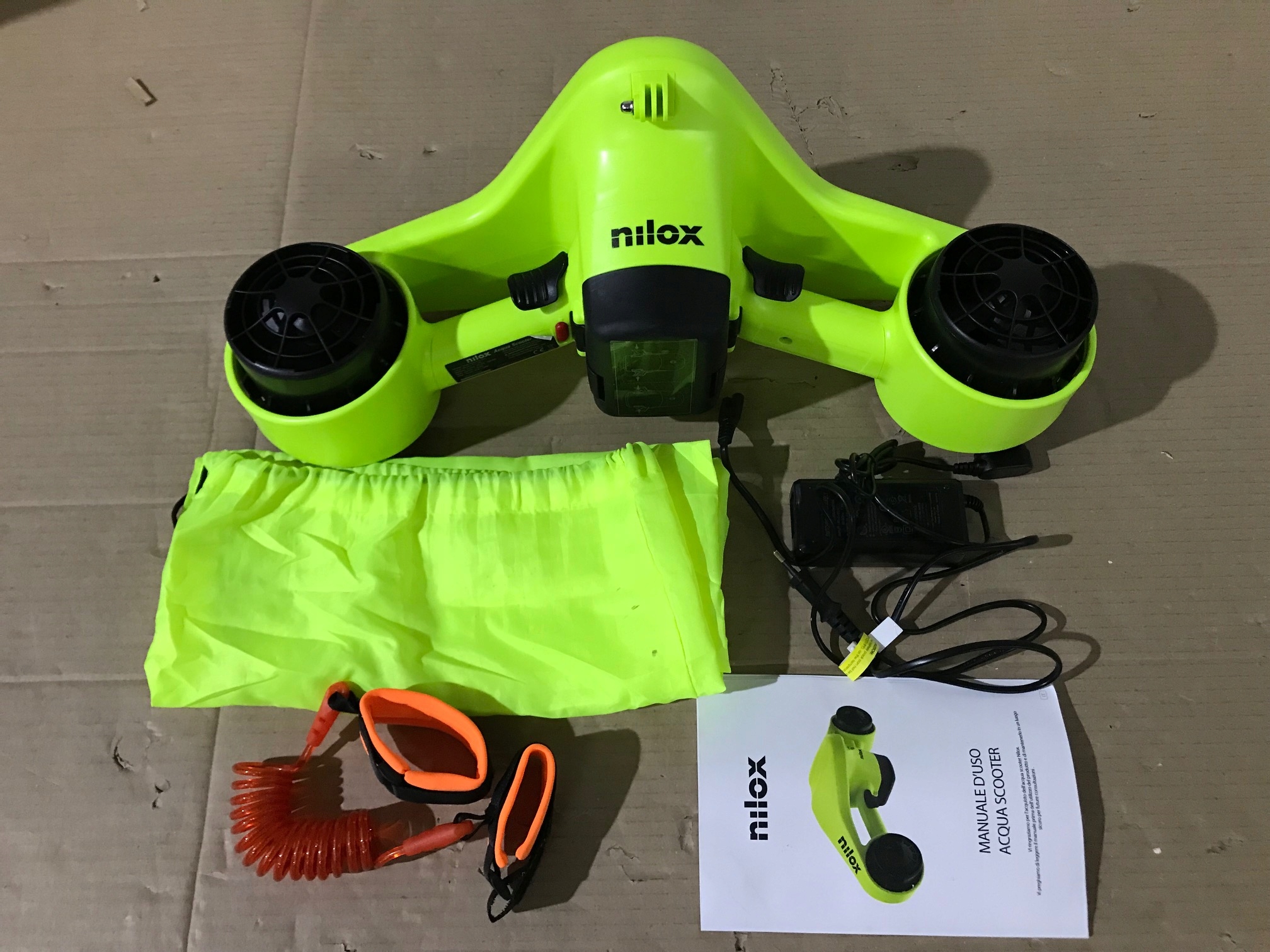 - СКУТЕР NILOX JET: керуйте морем на водному мотоциклі Nilox, завдяки знімній літій-іонній батареї 25,2 В / 5 Аг ви можете розважатися автономно до 35 хвилин із 3 перемиканнями передач