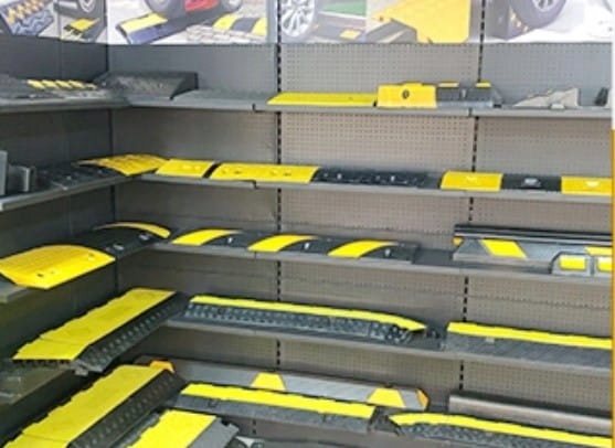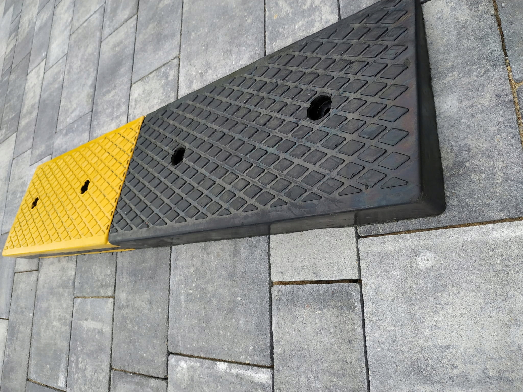 Він виготовлений із протиковзкої гуми зі спеціальною текстурою жовтого та чорного кольорів.