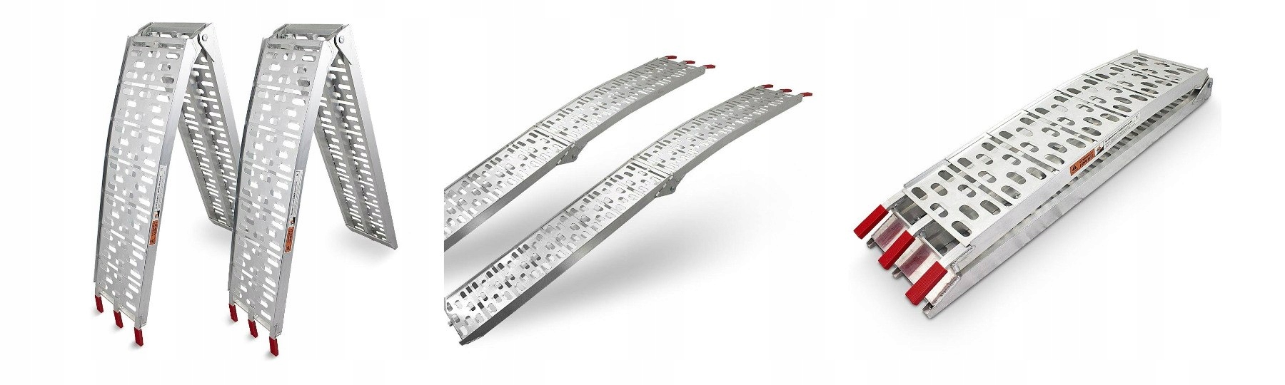 Набір алюмінієвих пандусів загальною вантажопідйомністю 340 кг (кожен). Дуже міцний і простий у використанні. Ідеально підходить для завантаження мотоциклів, газонокосарок, скутерів, будівельного обладнання та інших транспортних засобів.