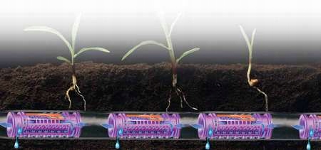 - Крапельниця з чудовими гідравлічними характеристиками дозволяє використовувати довгі зрошувальні лінії. з високою рівномірністю поливу.