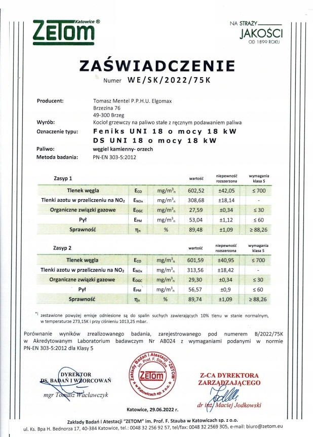 З сертифікатами класу 5 (PE-EN 303-5: 2012) та екологічним дизайном (2009/125/WE) )