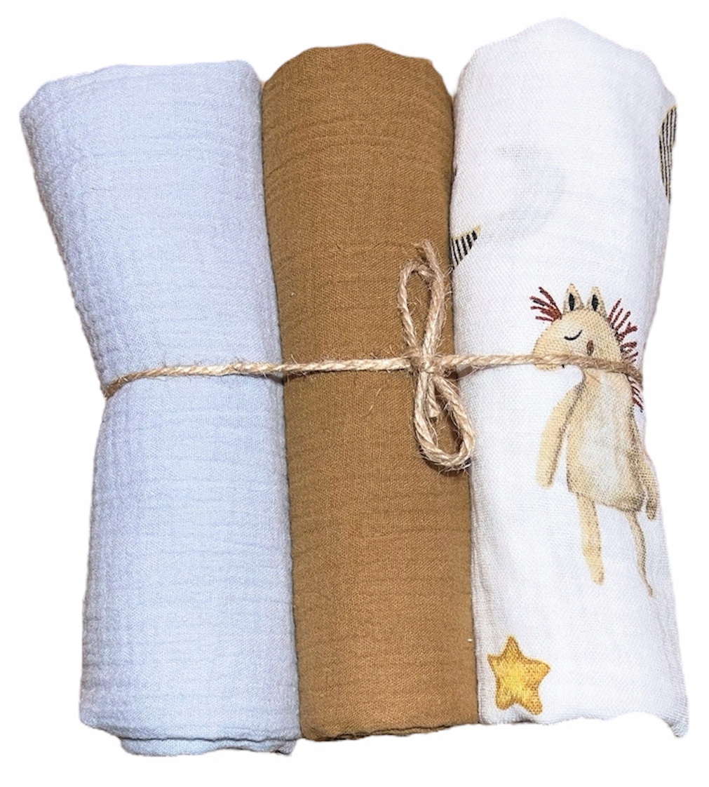 PIELUCHY MUŚLINOWE GRUBE KRESZOWANE PIELUSZKI 100% BAWEŁNA ZESTAW 3 SZT