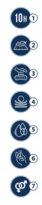 Розширений лімфатичний шар із спеціальними волокнами забезпечує підтримку природного рН шкіри. Поглинаюча вставка ефективно нейтралізує неприємний запах і швидко зупиняє рідини всередині, забезпечуючи відчуття сухість. Крім того, високоякісні матеріали є захистом від витоку.