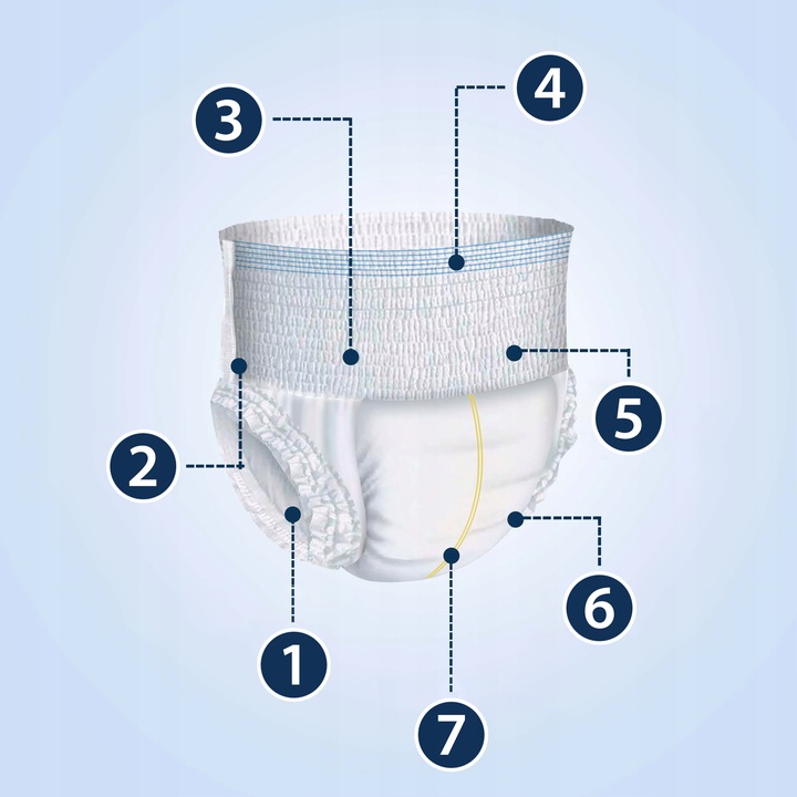 1. ✅ Гель високого поглинання змушує вас відчувати себе комфортно тривалий час. Ця виняткова поглинання та нейтралізація неприємних запахів спричиняють, що штани пелюшок надають комфорт безпеки.