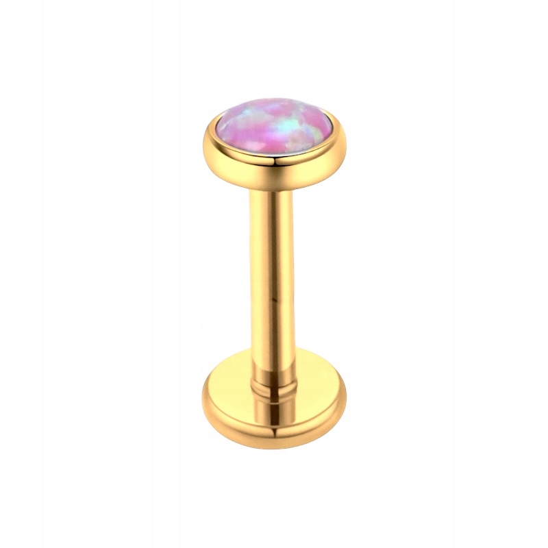 PIERCING Золота лабретка з рожевим опалом Titanium LOBE Helix 1.2/6/4