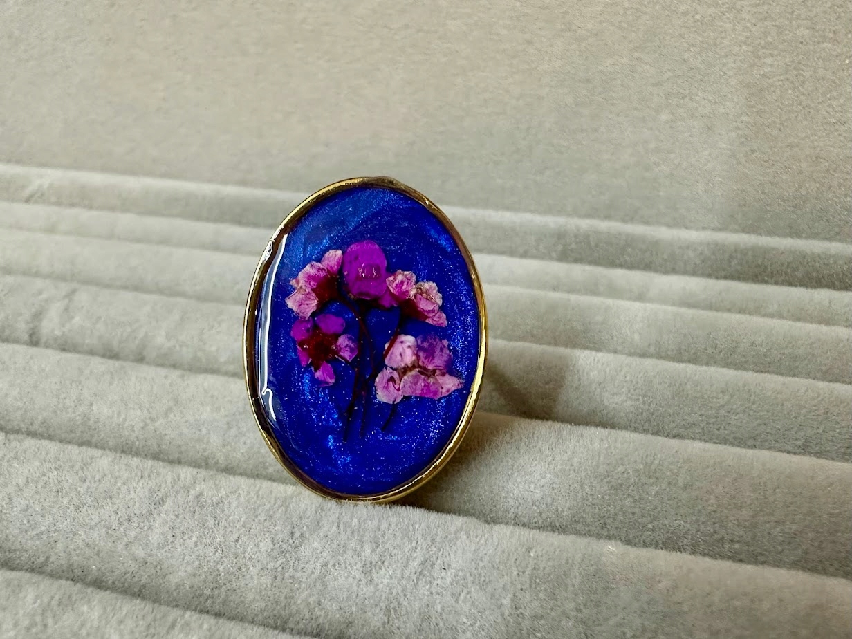 Pierścionek z żywicy z suszonymi kwiatkami Rękodzieło Rozmiar regulowany