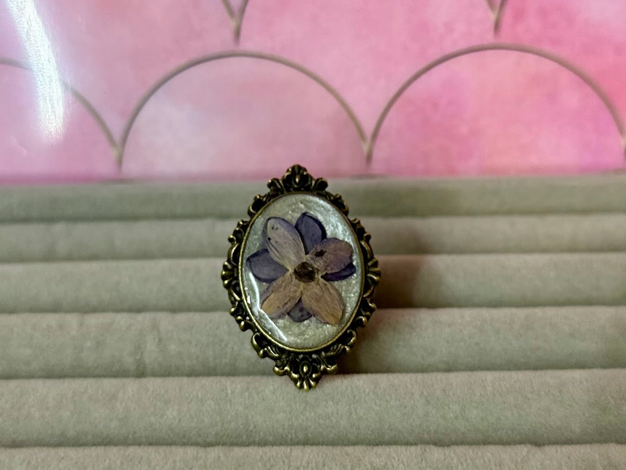 Pierścionek z żywicy z suszonymi kwiatkami Rękodzieło Rozmiar regulowany