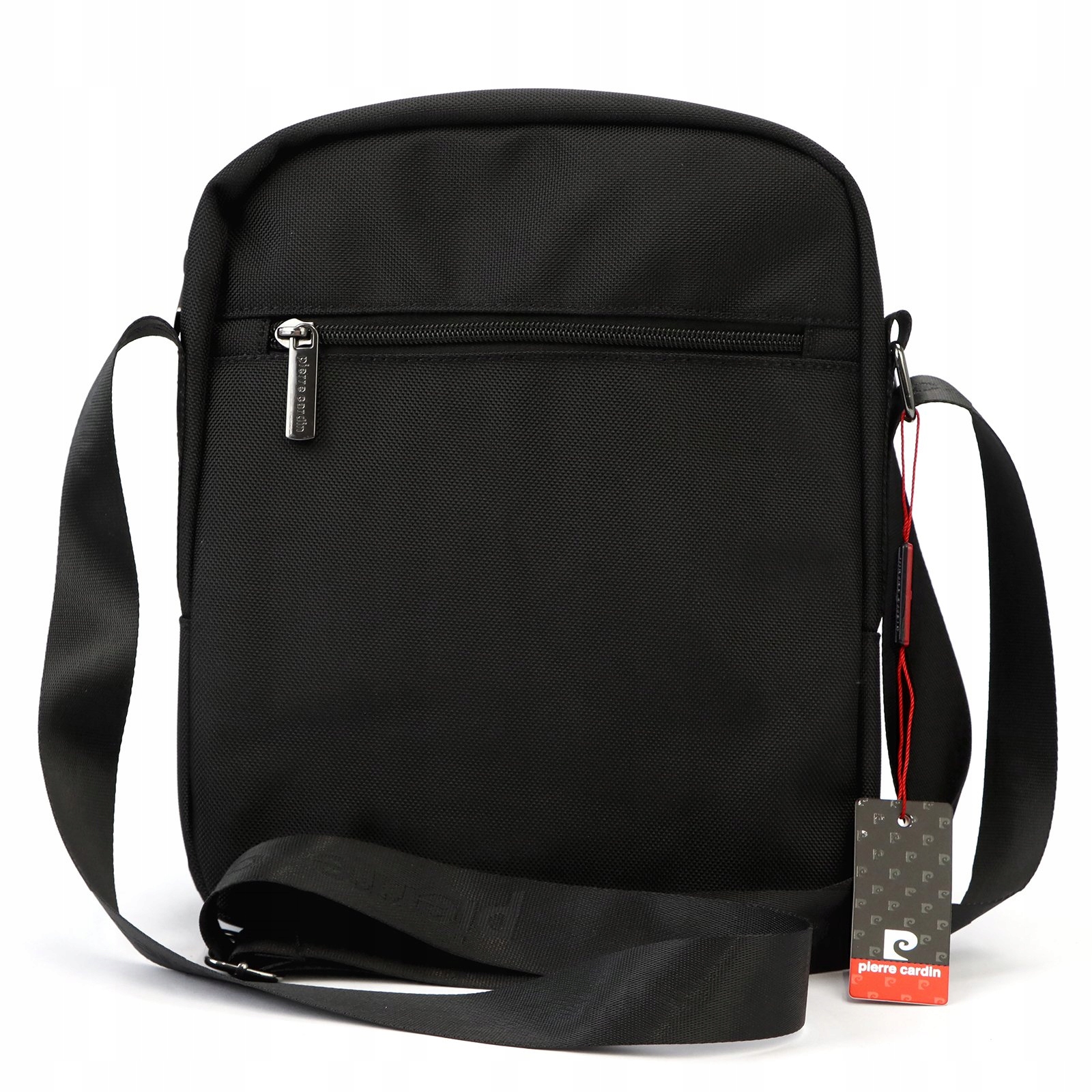 PIERRE CARDIN TORBA MĘSKA CZARNA LISTONOSZKA MATERIAŁOWA SZEROKI PASEK