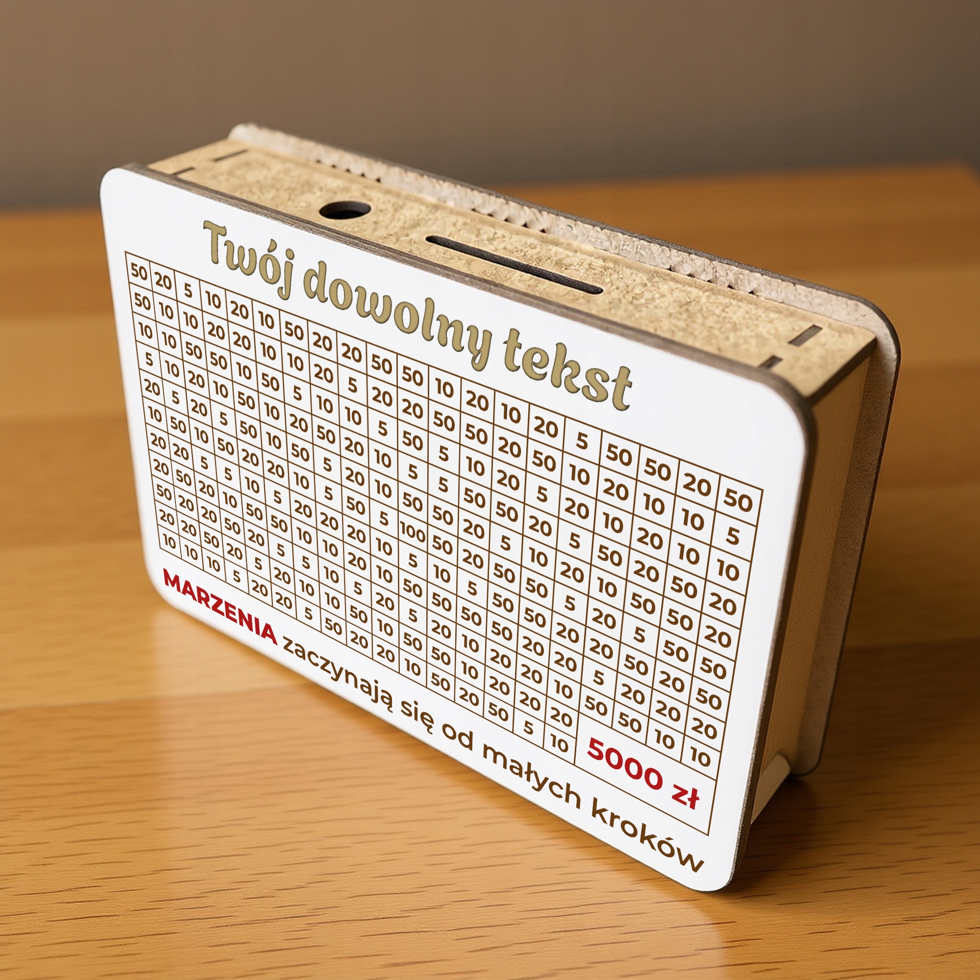 Створіть персоналізований скарбничок з гравірованим написом та готовою поперечною перехрестою з сумим для кидання. Це не лише практичний інструмент для збереження, але й унікальний подарунок, який надихає діяти поетапно.