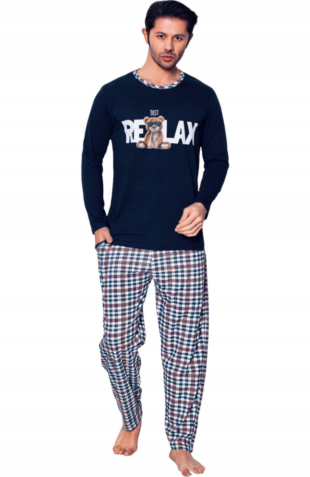 PIŻAMA MĘSKA DŁUGI RĘKAW DŁUGIE SPODNIE BAWEŁNA