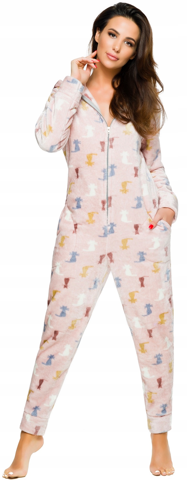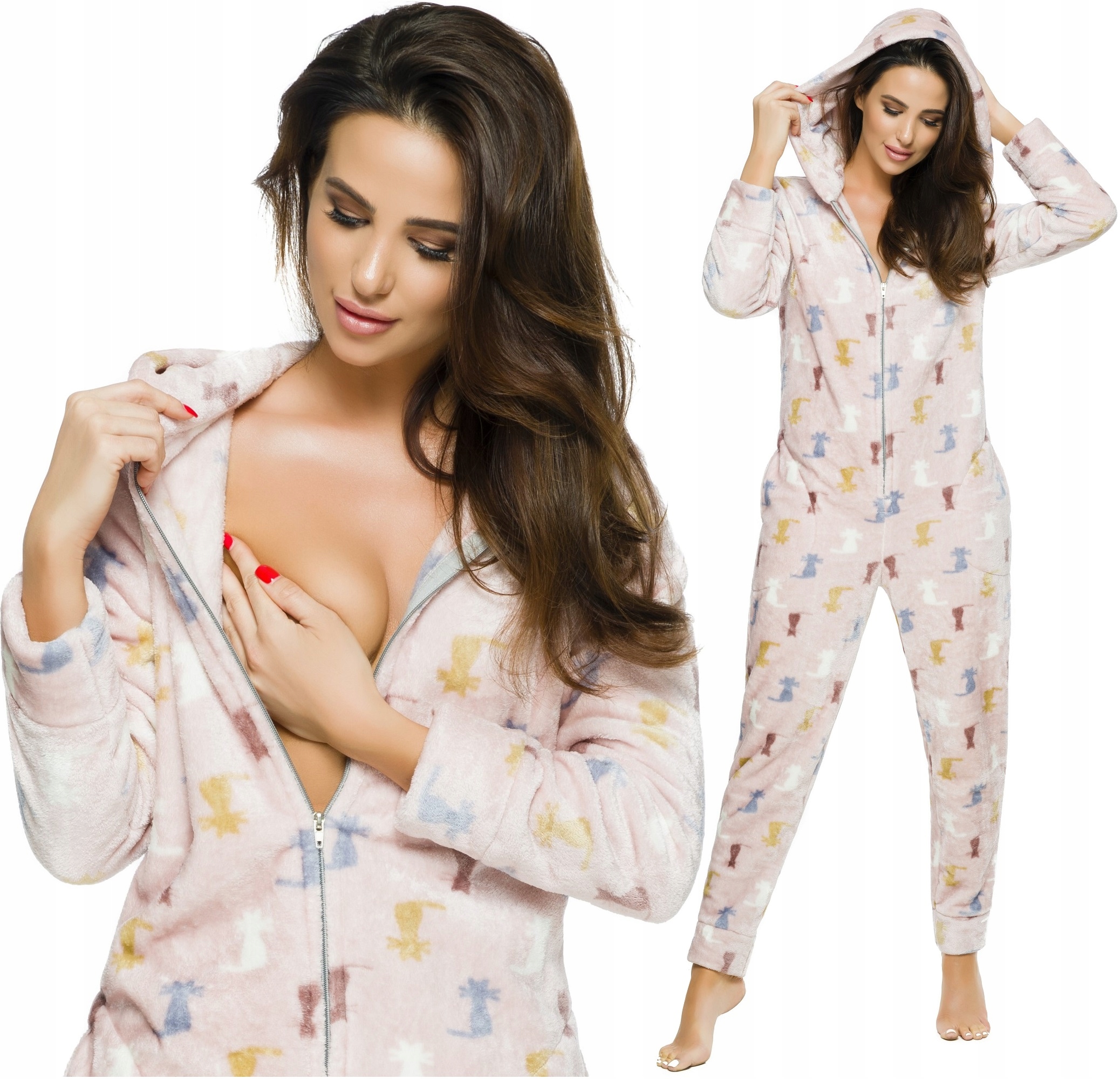 Гарний комбінезон з капюшоном. Застібається на блискавку. Піжама з практичними кишенями. Усі кошенята.