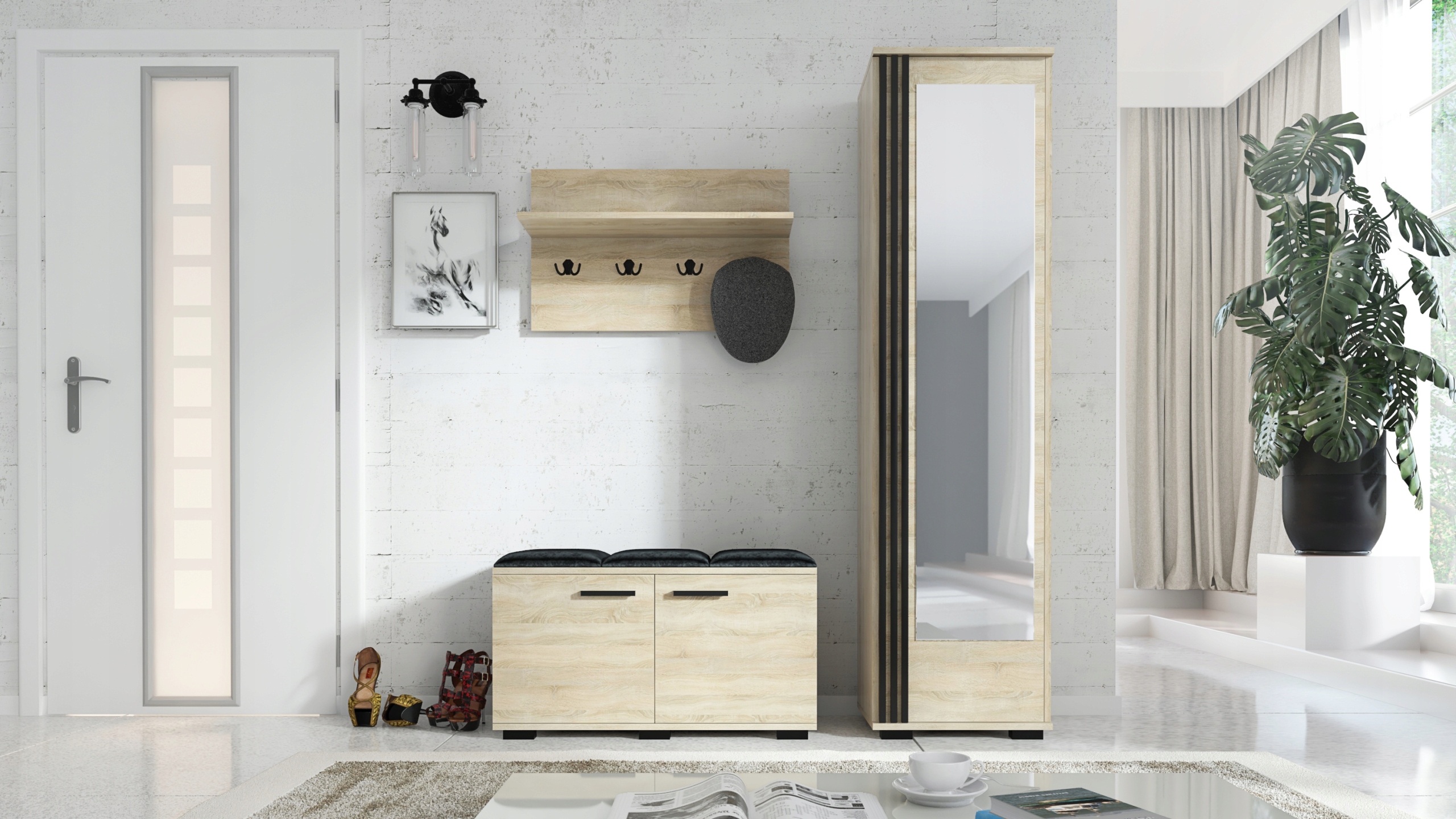 розроблений для максимальної функціональності та витонченості. Наш набір складається з трьох елементів: шафи з дзеркалом, вішалкою, взуттєвою шафою, яка забезпечує потрібне місце для зберігання одягу та взуття.