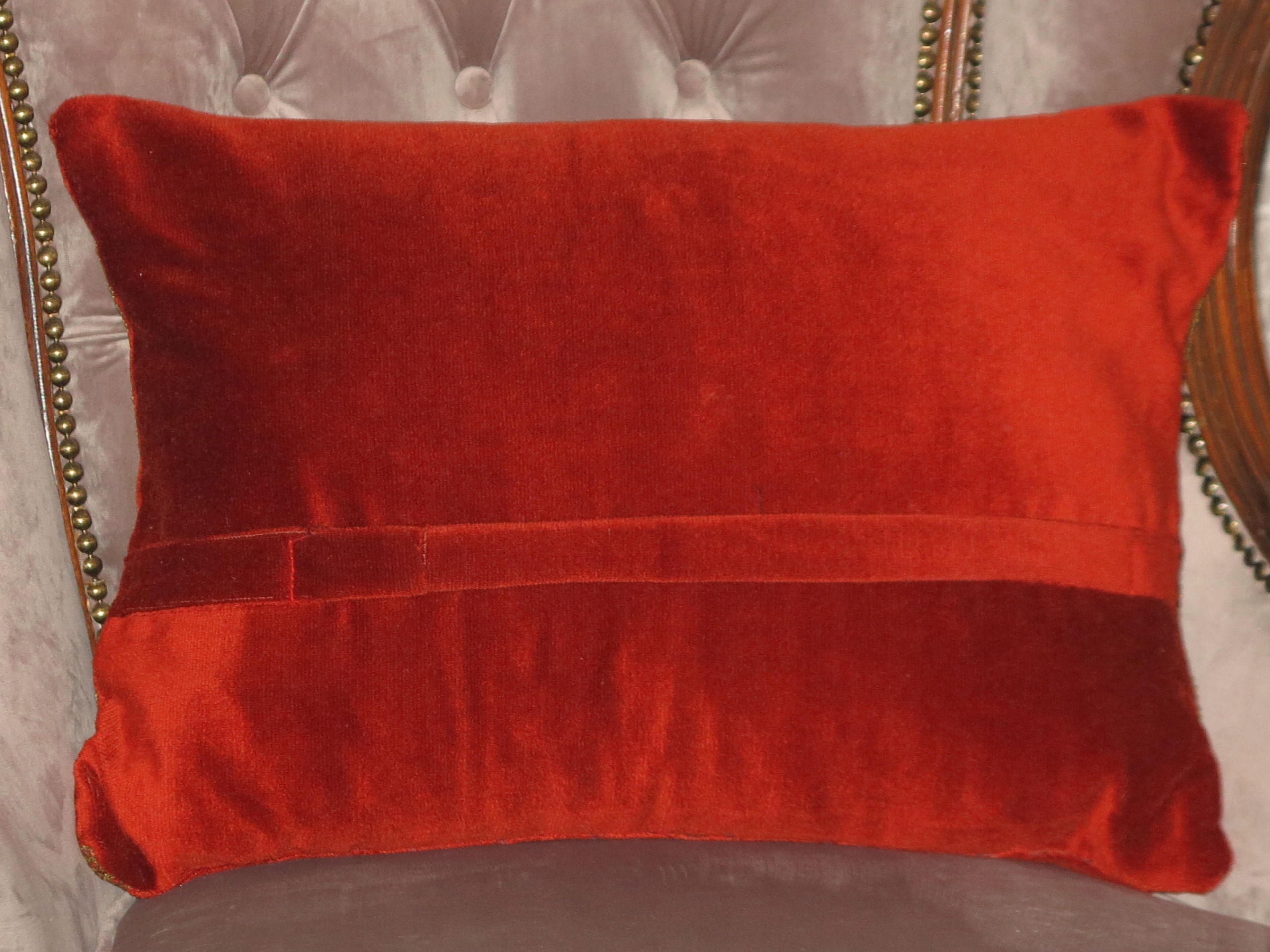 ВИНЯТКОВО ГАРНУ, ВЕЛИКУ І ДУЖЕ ДЕКОРАТИВНУ СТАРОВИННУ СТИЛЬНУ ОКСАМИТНУ ПОДУШКУ З НАПОВНЮВАЧОМ, ПРИКРОШЕНУ ГОБЕЛІНОМ СПЕРЕДУ. МЕТАЛІЗОВАНІ ОРІЙКИ З БОКІВ СТАРОВОГО ЗОЛОТА. БОРДОВИЙ ОКСАМИТ