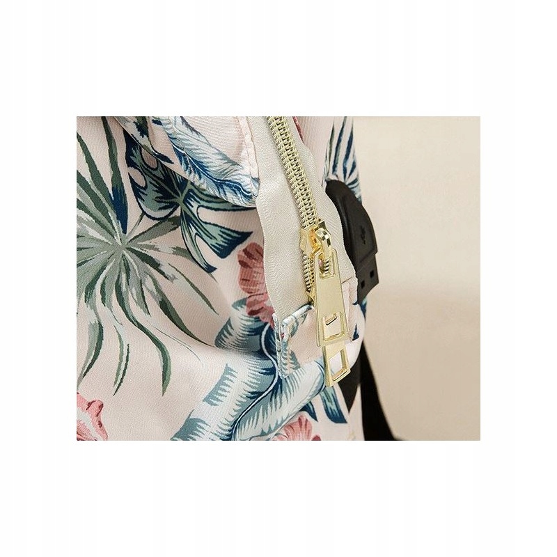 PIĘKNA KREMOWA TORBA - PLECAK DLA MAMY - WZÓR: MONSTERA I HIBISKUS
