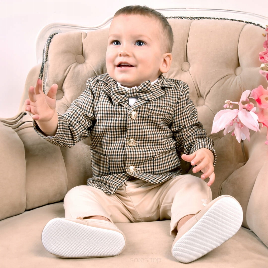Представляємо вам цю елегантну куртку з гусячими лапками для хлопчика у відтінках бежевого, коричневого та чорного. Виготовлена з високоякісних матеріалів, ця куртка не тільки стильна, але й довговічна.