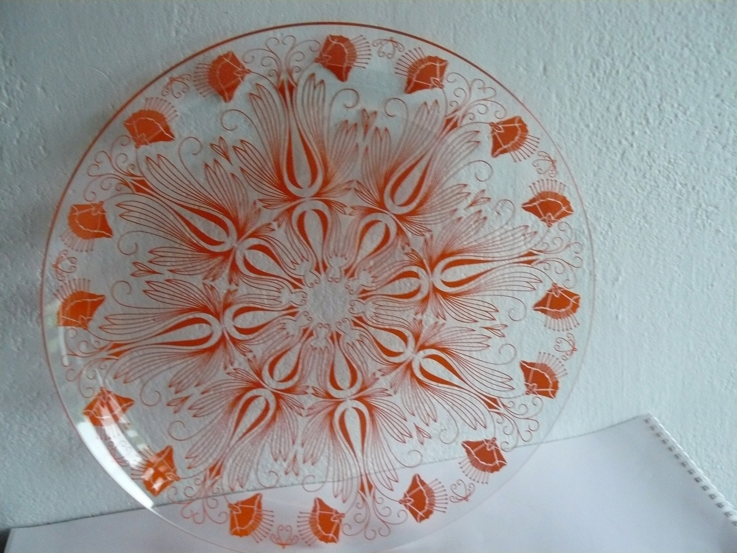 Красива тарілка з тонкого скла з привабливим орнаментом.