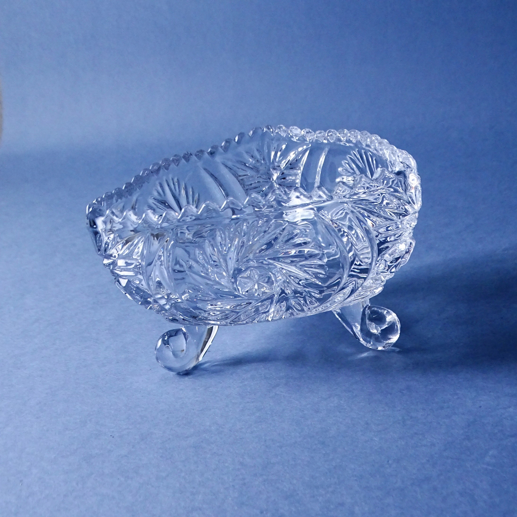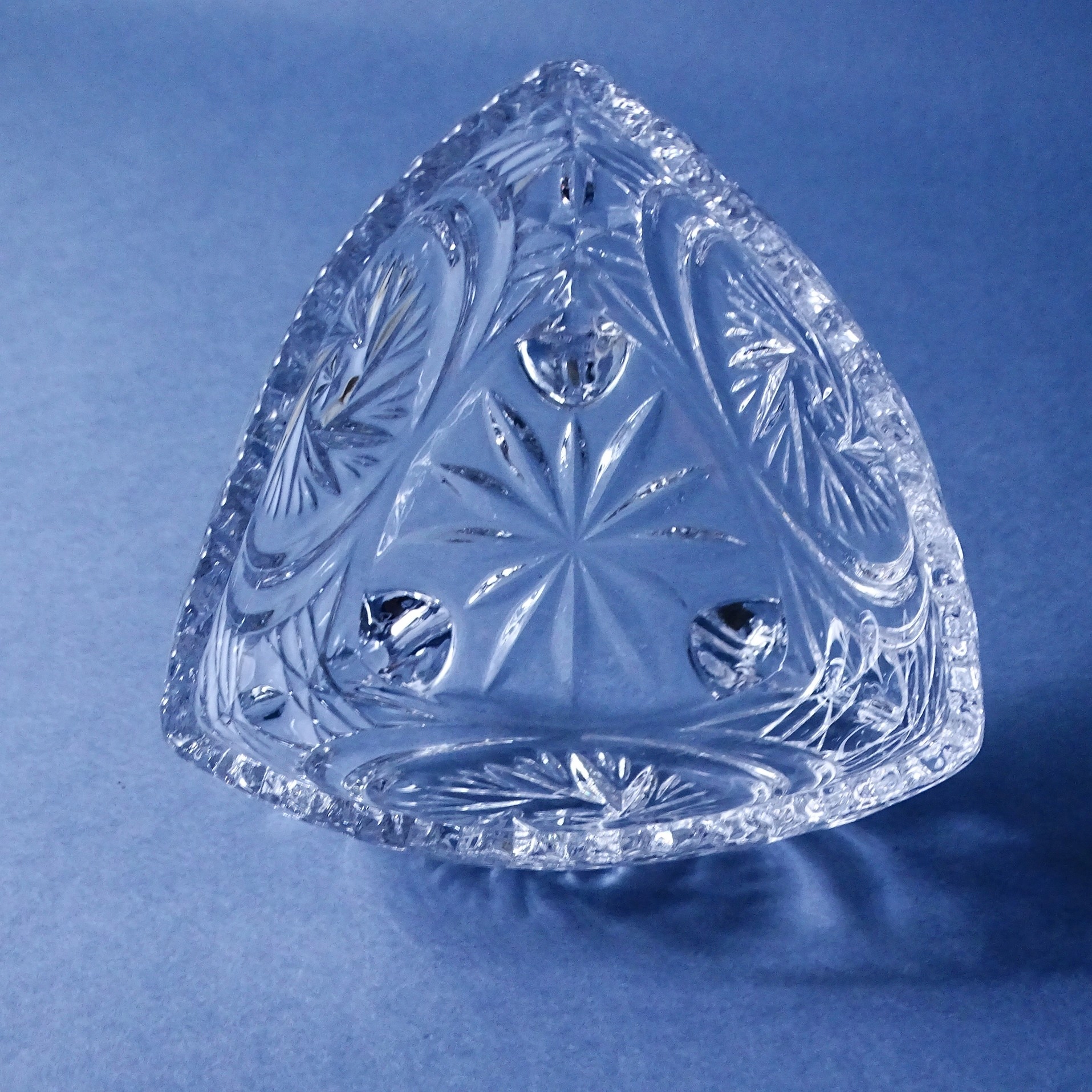 PIĘKNA TRÓJKĄTNA PATERKA MISECZKA KRYSZTAŁOWA CUKIERNICA BOMBONIERA